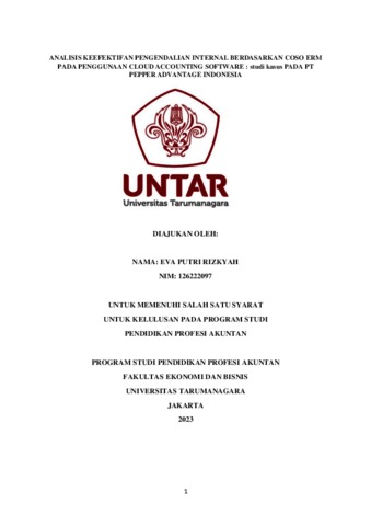 Sebuah analisa yang dilakukan dengan menggunakan metode studi kasus pada PT Pepper Advantage Indonesia, dimana pada Perusahaan tersebut menggunakan cloud accounting sebagai software akuntansi yang digunakan untuk mencatatat seluruh transaksi cash dan noncash Perusahaan. Peneliti ingin melakukan Analisa keefektifan implementasi COSO ERM pada penggunaan cloud accounting sebagai software akuntansi. Yang mana dengan menerapkan poin-poin dari coso seperti control environment, risk assessment, control activities, informasi dan komunikasi serta monitoring pada pembukuan atau pencatatan yang dilakukan pada cloud accounting. Dengan mengimplemantasikan COSO tersebut pada penggunaan cloud accounting di harapkan bisa menyajikan informasi laporan keuangan yang akurat bagi pengguna informasi leaporan keuangan tersebut terutama untuk manajemen Perusahaan PT Pepper Advantage Indonesia. Kata Kunci: Pengendalian Internal, Cloud Accounting. An analysis carried out used the case study method at PT Pepper Advantage Indonesia, which the company uses cloud accounting as the accounting software to record all the Company's cash and non-cash transactions. Researchers want to analyze the effectiveness of the implementation of COSO ERM on the use of cloud accounting as accounting software. Which is by applying some points from COSO ERM such as control environment, risk assessment, control activities, information and communication and monitoring in bookkeeping or recording carried out in cloud accounting. By implementing COSO using cloud accounting, it is hoped that it will be able to provide accurate financial statement information for users especially for company management of PT Pepper Advantage Indonesia. Keywords: Internal Control, Cloud Accounting.