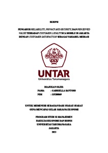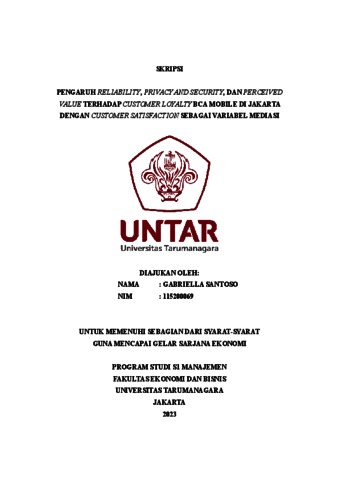 Santoso, Gabriella (2023) PENGARUH RELIABILITY, PRIVACY AND SECURITY, DAN PERCEIVED VALUE TERHADAP CUSTOMER LOYALTY BCA MOBILE DI JAKARTA DENGAN CUSTOMER SATISFACTION SEBAGAI VARIABEL MEDIASI. Skripsi thesis, Universitas Tarumanagara.