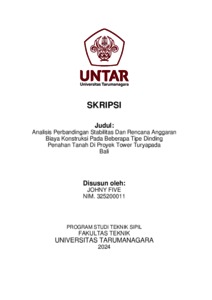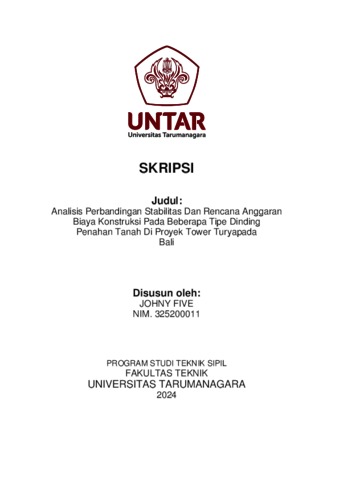 Five, Johny (2024) Analisis perbandingan stabilitas dan rencana anggaran biaya konstruksi pada beberapa tipe dinding penahan tanah di proyek tower turyapada Bali (TS - 2636). Skripsi thesis, Universitas Tarumanagara.