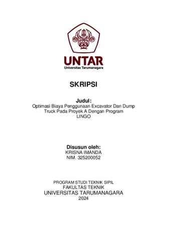 Imanda, Krisna (2024) Optimasi biaya penggunaan excavator dan dump truck pada proyek a dengan program lingo (TS - 2639). Skripsi thesis, Universitas Tarumanagara.