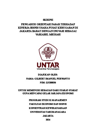 Purwanto, Gilbert Imanuel (2023) PENGARUH ORIENTASI PASAR TERHADAP KINERJA BISNIS USAHA PUSAT KEBUGARAN DI JAKARTA BARAT DENGAN INOVASI SEBAGAI VARIABEL MEDIASI. Skripsi thesis, Universitas Tarumanagara.