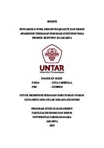 Carbella, Gita (2023) PENGARUH E-WOM, PERCEIVED QUALITY, DAN BRAND AWARENESS TERHADAP PURCHASE INTENTION PADA PRODUK SKINTIFIC DI JAKARTA. Skripsi thesis, Universitas Tarumanagara.