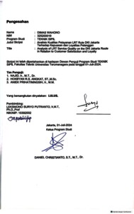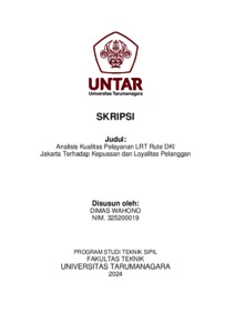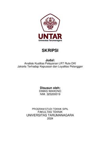 Wahono, Dimas (2024) Analisis kualitas pelayanan lrt rute DKI Jakarta terhadap kepuasan dan loyalitas pelanggan (TS - 2650). Skripsi thesis, Universitas Tarumanagara.