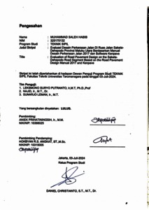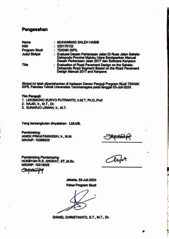 Habib, Muhammad Saleh (2024) Evaluasi desain perkerasan jalan di ruas jalan Saketa-Dahepodo Provinsi Maluku Utara berdasarkan manual desain perkerasan jalan 2017 dan software kenpave (TS - 2654). Skripsi thesis, Universitas Tarumanagara.