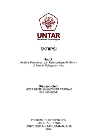 Tarigan, Kezia Demelia Khovi BR (2024) Analisis kebutuhan dan ketersediaan air bersih di daerah Kabupaten Karo (TS - 2665). Skripsi thesis, Universitas Tarumanagara.