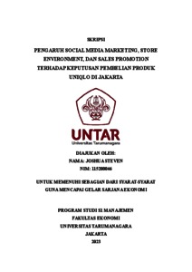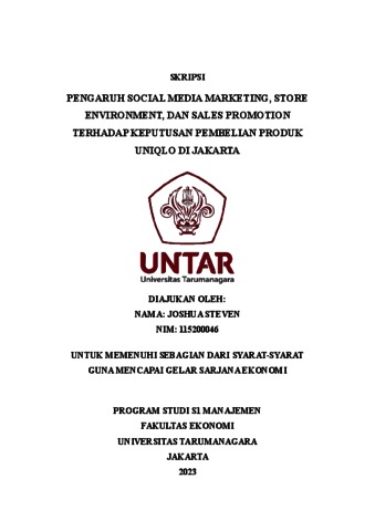 Steven, Joshua (2023) PENGARUH SOCIAL MEDIA MARKETING, STORE ENVIRONMENT, DAN SALES PROMOTION TERHADAP KEPUTUSAN PEMBELIAN PRODUK UNIQLO DI JAKARTA. Skripsi thesis, Universitas Tarumanagara.