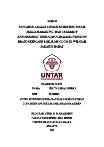 Saraliandra, Junita (2023) PENGARUH ONLINE CONSUMER REVIEW, SOCIAL MEDIA MARKETING, DAN CELEBRITY ENDORSEMENT TERHADAP PURCHASE INTENTION BRAND SKINCARE LOKAL MS GLOW DI WILAYAH JAKARTA BARAT. Skripsi thesis, Universitas Tarumanagara.