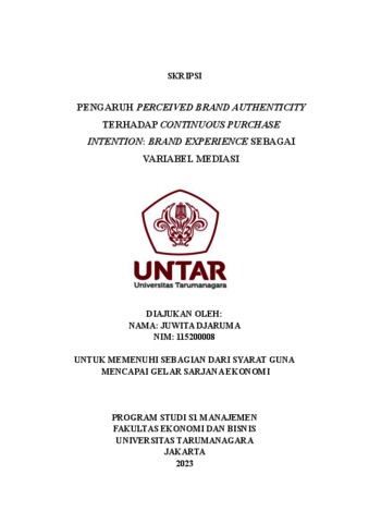 Djaruma, Juwita (2023) PENGARUH PERCEIVED BRAND AUTHENTICITY TERHADAP CONTINUOUS PURCHASE INTENTION: BRAND EXPERIENCE SEBAGAI VARIABEL MEDIASI. Skripsi thesis, Universitas Tarumanagara.