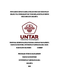 Heaviside, Marceline (2023) PENGARUH MINAT KARIR, EFIKASI DIRI DAN DUKUNGAN ORANG TUA TERHADAP NIAT NGM MELANJUTKAN BISNIS KELUARGA DI JAKARTA. Skripsi thesis, Universitas Tarumanagara.