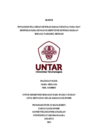 Mellisa, Mellisa (2023) PENGARUH PELATIHAN KEWIRAUSAHAAN DIGITAL PADA NIAT BERWIRAUSAHA DENGAN KOMPETENSI KEWIRAUSAHAAN SEBAGAI VARIABEL MEDIASI. Skripsi thesis, Universitas Tarumanagara.
