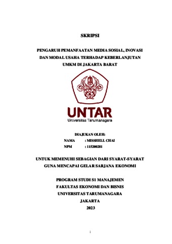 Chai, Misshell (2023) PENGARUH PEMANFAATAN MEDIA SOSIAL, INOVASI DAN MODAL USAHA TERHADAP KEBERLANJUTAN UMKM DI JAKARTA BARAT. Skripsi thesis, Universitas Tarumanagara.