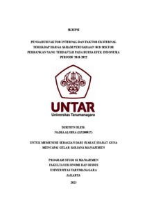 Alodia, Nadia (2023) PENGARUH FAKTOR INTERNAL DAN FAKTOR EKSTERNAL TERHADAP HARGA SAHAM PERUSAHAAN SUB SEKTOR PERBANKAN YANG TERDAFTAR PADA BURSA EFEK INDONESIA PERIODE 2018-2022. Skripsi thesis, Universitas Tarumanagara.