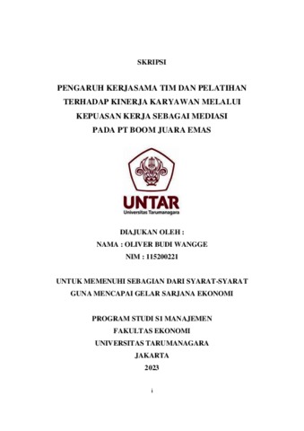 Wangge, Oliver Budi (2023) PENGARUH KERJASAMA TIM DAN PELATIHAN TERHADAP KINERJA KARYAWAN MELALUI KEPUASAN KERJA SEBAGAI MEDIASI PADA PT BOOM JUARA EMAS. Skripsi thesis, Universitas Tarumanagara.
