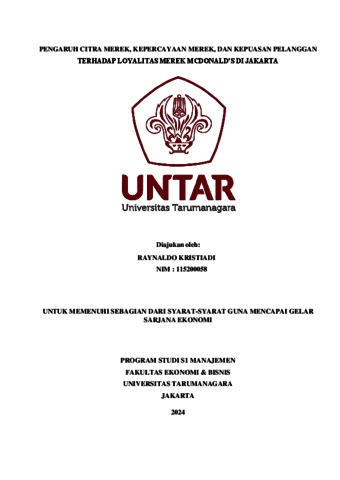 Kristiadi, Raynaldo (2023) PENGARUH CITRA MEREK, KEPERCAYAAN MEREK, DAN KEPUASAN PELANGGAN TERHADAP LOYALITAS MEREK MCDONALD’S DI JAKARTA. Skripsi thesis, Universitas Tarumanagara.