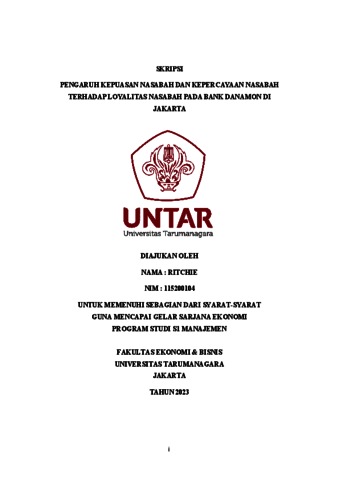 Ritchie, Ritchie (2023) PENGARUH KEPUASAN NASABAH DAN KEPERCAYAAN NASABAH TERHADAP LOYALITAS NASABAH PADA BANK DANAMON DI JAKARTA. Skripsi thesis, Universitas Tarumanagara.