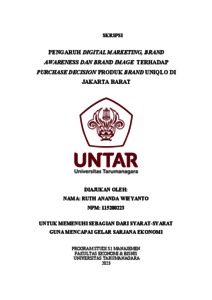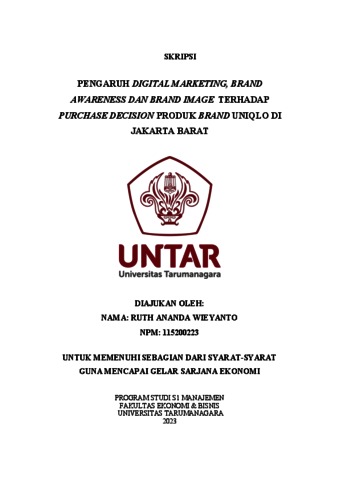 Wieyanto, Ruth Ananda (2023) PENGARUH DIGITAL MARKETING, BRAND AWARENESS DAN BRAND IMAGE TERHADAP PURCHASE DECISION PRODUK BRAND UNIQLO DI JAKARTA BARAT. Skripsi thesis, Universitas Tarumanagara.