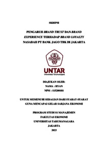 Ryan, Ryan (2023) PENGARUH BRAND TRUST DAN BRAND EXPERIENCE TERHADAP BRAND LOYALTY NASABAH PT BANK JAGO TBK DI JAKARTA. Skripsi thesis, Universitas Tarumanagara.