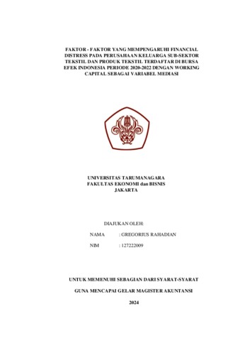 Rahadian, Gregorius (2023) Faktor-faktor yang mempengaruhi financial distres pada perusahan keluarga sub-sektor tekstil dan produk tekstil terdaftar di Bursa Efek Indonesia periode 2020-2022 dengan working capital sebagai variabel mediasi. Masters thesis, Universitas Tarumanagra.