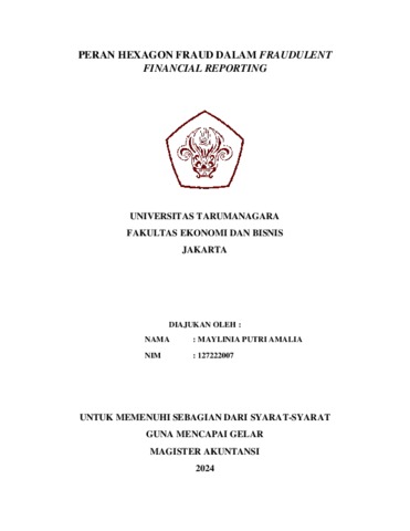 Amalia, Maylinia Putri (2023) Peran hexagon fraud dalam fraudulent financial reporting. Masters thesis, Universitas Tarumanagra.