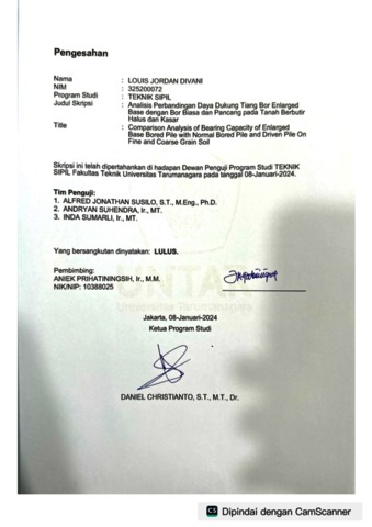 Divani, Louis Jordan (2024) Analisis perbandingan daya dukung tiang bor enlarged base dengan bor biasa dan pancang pada tanah berbutir halus dan kasar (TS - 2669). Skripsi thesis, Universitas Tarumanagara.