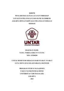 Tatang, Teresa Edelyn (2023) PENGARUH KUALITAS LAYANAN TERHADAP LOYALITAS PELANGGAN PADA BANK MANDIRI DI JAKARTA DENGAN KEPUASAN PELANGGAN SEBAGAI MEDIASI. Skripsi thesis, Universitas Tarumanagara.