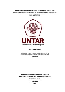 Handayani, Andi Nur Azizah Trisafitri (2023) Risiko kegagalan bisnis pada PT Wasckita Karya TBK dengan pendekatan prositabilitas, likuiditas, leverage dan aktivitas. Masters thesis, Universitas Tarumanagra.