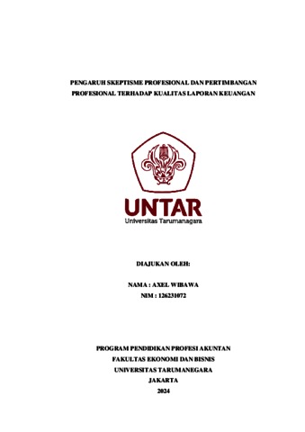 Wibawa, Axel (2023) Pengaruh skeptisme profesional dan pertimbangan profesional terhadap kualitas laporan keuangan. Masters thesis, Universitas Tarumanagra.