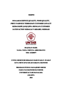 Abdichianto, Viona Virtuna (2023) PENGARUH SERVICE QUALITY, FOOD QUALITY, PRICE FAIRNESS TERHADAP CUSTOMER LOYALTY KEDAI KOPI JANJI JIWA DENGAN CUSTOMER SATISFACTION SEBAGAI VARIABEL MEDIASI. Skripsi thesis, Universitas Tarumanagara.