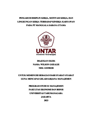 Gozalie, Wilson (2023) PENGARUH DISIPLIN KERJA, MOTIVASI KERJA, DAN LINGKUNGAN KERJA TERHADAP KINERJA KARYAWAN PADA PT MANGGALA SARANA UTAMA. Skripsi thesis, Universitas Tarumanagara.