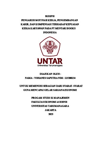 Saputra, Yohanes (2023) PENGARUH MOTIVASI KERJA, PENGEMBANGAN KARIR, DAN KOMPENSASI TERHADAP KEPUASAN KERJA KARYAWAN PADA PT MENTARI BOOKS INDONESIA. Skripsi thesis, Universitas Tarumanagara.