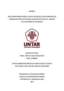 Mahanani, Zenita Dian (2023) PENGARUH BEBAN KERJA, MOTIVASI KERJA, DAN KOMUNIKASI TERHADAP KEPUASAN KERJA KARYAWAN PADA PT. ARLENE JAYA MANDIRI DI CIKARANG. Skripsi thesis, Universitas Tarumanagara.