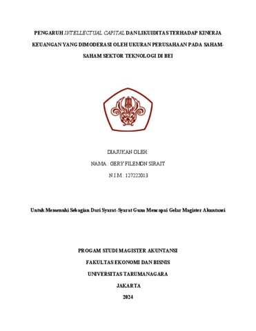 Sirait, Gery Filemon (2023) Pengaruh intellectual capital dan likuiditas terhadap kinerja keuangan yang dimoderasi oleh ukuran perusahaan pada saham-saham sektor teknologi di BEI. Masters thesis, Universitas Tarumanagra.