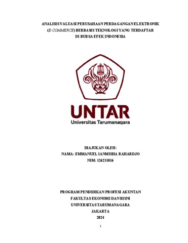 Rahardjo, Emmanuel Ianmisha (2023) Analisis valuasi perusahaan perdagangan elektrgonik (e-commerce) berbasis teknologi yang terdaftar di Bursa Efek Indonesia. Masters thesis, Universitas Tarumanagra.