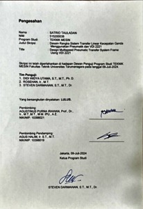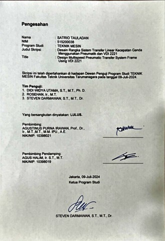 Tauladan, Satrio (2024) Desain rangka sistem transfer linier kecepatan ganda menggunakan pneumatik dan vdi 2221 (TM - 1361). Skripsi thesis, Universitas Tarumanagara.