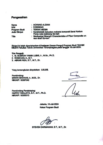 Aldian, Achmad (2024) Karakteristik kekuatan mekanis serat karbon poros roda belakang go-kart (TM - 1369). Skripsi thesis, Universitas Tarumanagara.
