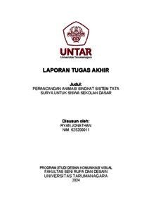 Jonathan, Ryan (2024) Perancangan animasi singkat sistem tata surya untuk siswa sekolah dasar (DKV - 3021). Skripsi thesis, Universitas Tarumanagara.