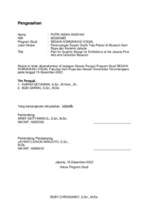 Anisyah, Putri Indah (2024) Perancangan desain grafis tata pamer di Museum Seni Rupa dan Keramik Jakarta (DKV - 3028). Skripsi thesis, Universitas Tarumanagara.