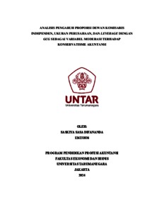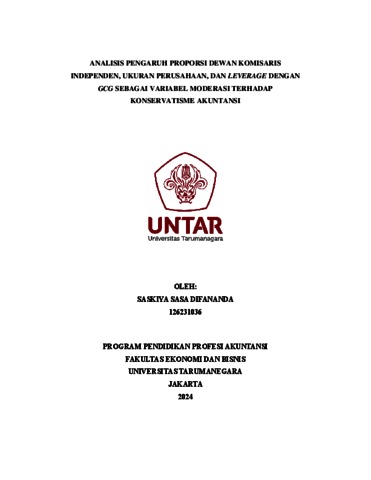 Difananda, Saskiya Sasa (2023) Analisis pengaruh proporsi dewan komisaris independen, ukuran perusahaan, dan leverage dengan GCG sebagai variabel moderasi terhadap konservatisme akuntansi. Masters thesis, Universitas Tarumanagara.