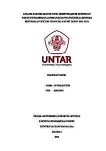 Yesi, Ni Wayan (2023) Analisa faktor-faktor yang mempengaruhi ketepatan waktu penyampaian laporan keuangan (studi kasus pada perusahaan sektor financials di BEI tahun 2021-2023. Masters thesis, Universitas Tarumanagara.