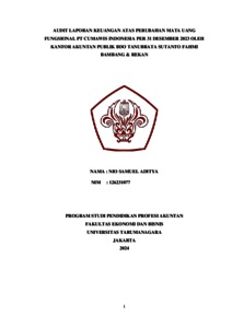 Aditya, Nio Samuel (2023) Audit laporan keuangan atas perubahan mata uang fungsional PT Cumawis Indonesia per 31 desember 2023 oleh kator akuntan publik BDO Tanubrata Sutanto Fahmi Bambang & Rekan. Masters thesis, Universitas Tarumanagara.