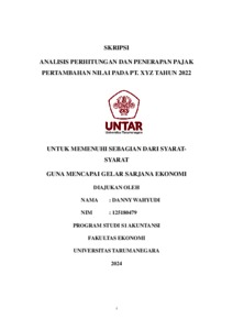 Wahyudi, Danny (2023) ANALISIS PERHITUNGAN DAN PENERAPAN PAJAK PERTAMBAHAN NILAI PADA PT. XYZ TAHUN 2022. Skripsi thesis, Universitas Tarumanagara.