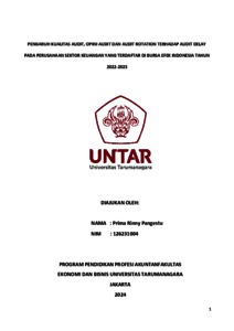 Panngestu, Prima Rinny (2023) Pengarguh kualitas audit, opini audit dan audit rotation terhadap audit delay pada perusahaan sektor keuangan yang terdaftar di Bursa Efek Indonesia tahun 2022-2023. Masters thesis, Universitas Tarumanagara.