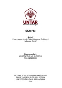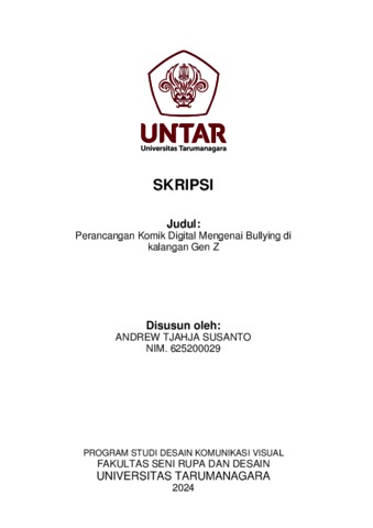 Susanto, Andrew Tjahja (2024) Perancangan komik digital mengenai bullying di kalangan gen z (DKV - 3037). Skripsi thesis, Universitas Tarumanagara.