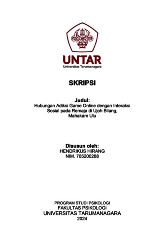 Hirang, Hendrikus (2024) Hubungan Adiksi Game Online Dengan Kemampuan Interaksi Sosial Pada Remaja di Kampung Ujoh Bilang, Mahakam Ulu. Skripsi thesis, Universitas Tarumanagara.