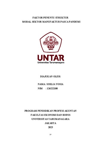 Yosia, Sisilia (2023) Faktor penentu struktur modal sektor manufaktur pasca pandemi. Doctoral thesis, Universitas Tarumanagara.
