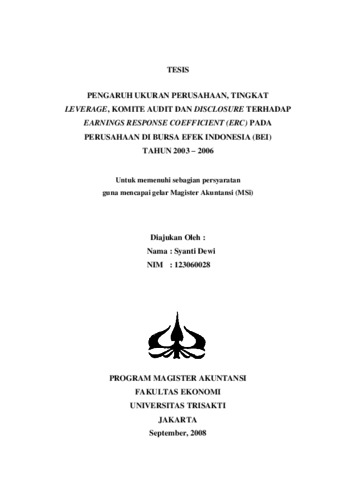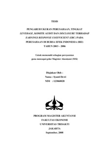 syanti dewi, tesis (2008) Pengaruh ukuran perusahaan , tingkat leverage.... Masters thesis, Universitas Tarumanagara.