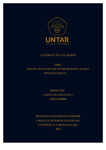 Feliciana, Samantha (2023) Perancangan desain interior hotel Mason Pine di Bandung (DI - 2492). Skripsi thesis, Universitas Tarumanagara.
