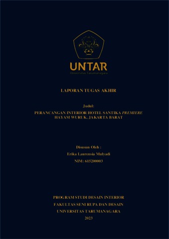 Mulyadi, Erika Laurensia (2023) Perancangan interior Hotel Santika Premier Hayam Wuruk, Jakarta Barat (DI - 2515). Skripsi thesis, Universitas Tarumanagara.