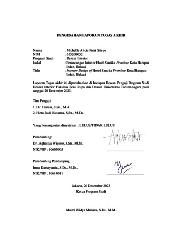 Sitepu, Michelle Alicia Putri (2023) Perancangan interior Hotel Santika Premiere Kota Harapan Indah Bekasi (DI - 2518). Skripsi thesis, Universitas Tarumanagara.