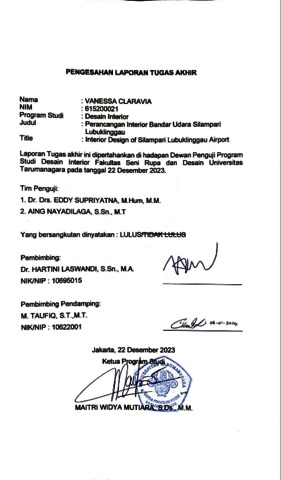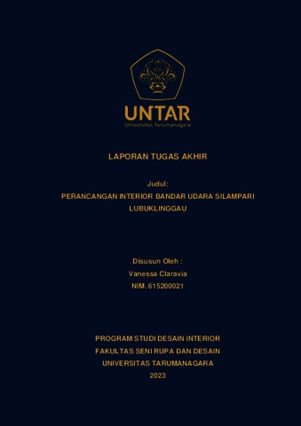 Claravia, Vanessa (2023) Perancangan interior Bandar Udara Silampar Lubuk Linggau (DI - 2520). Skripsi thesis, Universitas Tarumanagara.